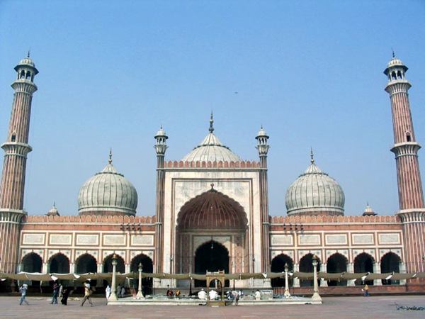 Jama Masjid, commonly known as the Jama Masjid of Delhi, is the principal mosque of Old Delhi in India. Commissioned by the Mughal Emperor Shah Jahan, builder of the Taj Mahal, and completed in the year 1656 AD, it is the largest and best-known mosque in India and ninth largest mosque in the world. It lies at the origin of a very busy central street of Old Delhi, Chandni Chowk. The later name, Jama Masjid, is a reference to the weekly Friday noon congregation prayers of Muslims, Jummah, which are usually done at a mosque, the “congregational mosque”. The courtyard of the mosque can hold up to twenty-five thousand worshipers.